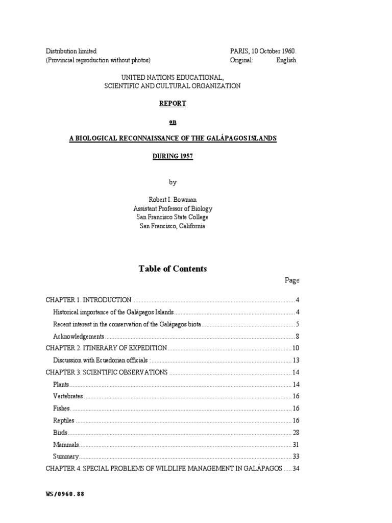 Unesco Report On Galapagos 1960 Pdf Galapagos Islands Ecuador